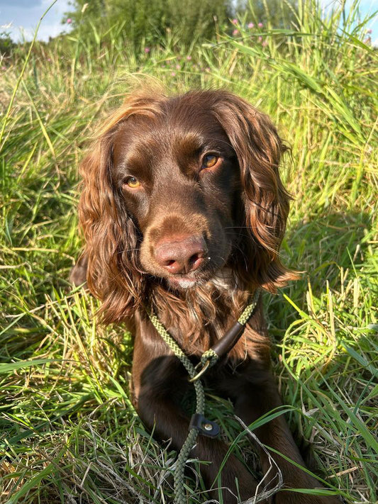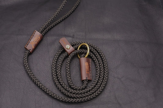 Handgemachte traditionelle Schlupfleine für Jagdhunde - Massives Messing und Leder mit schwarzem oder olivfarbenem Nylonseil
